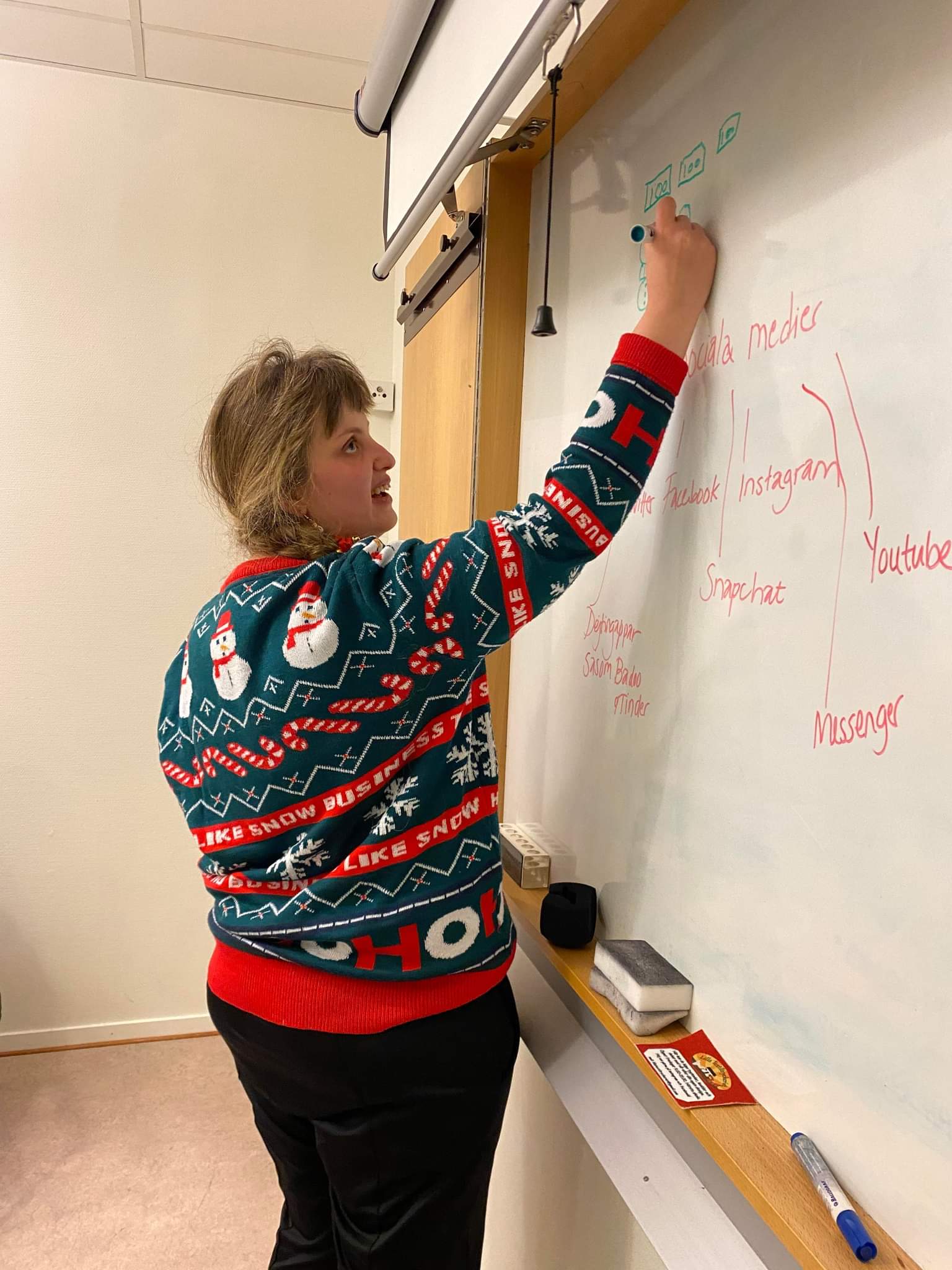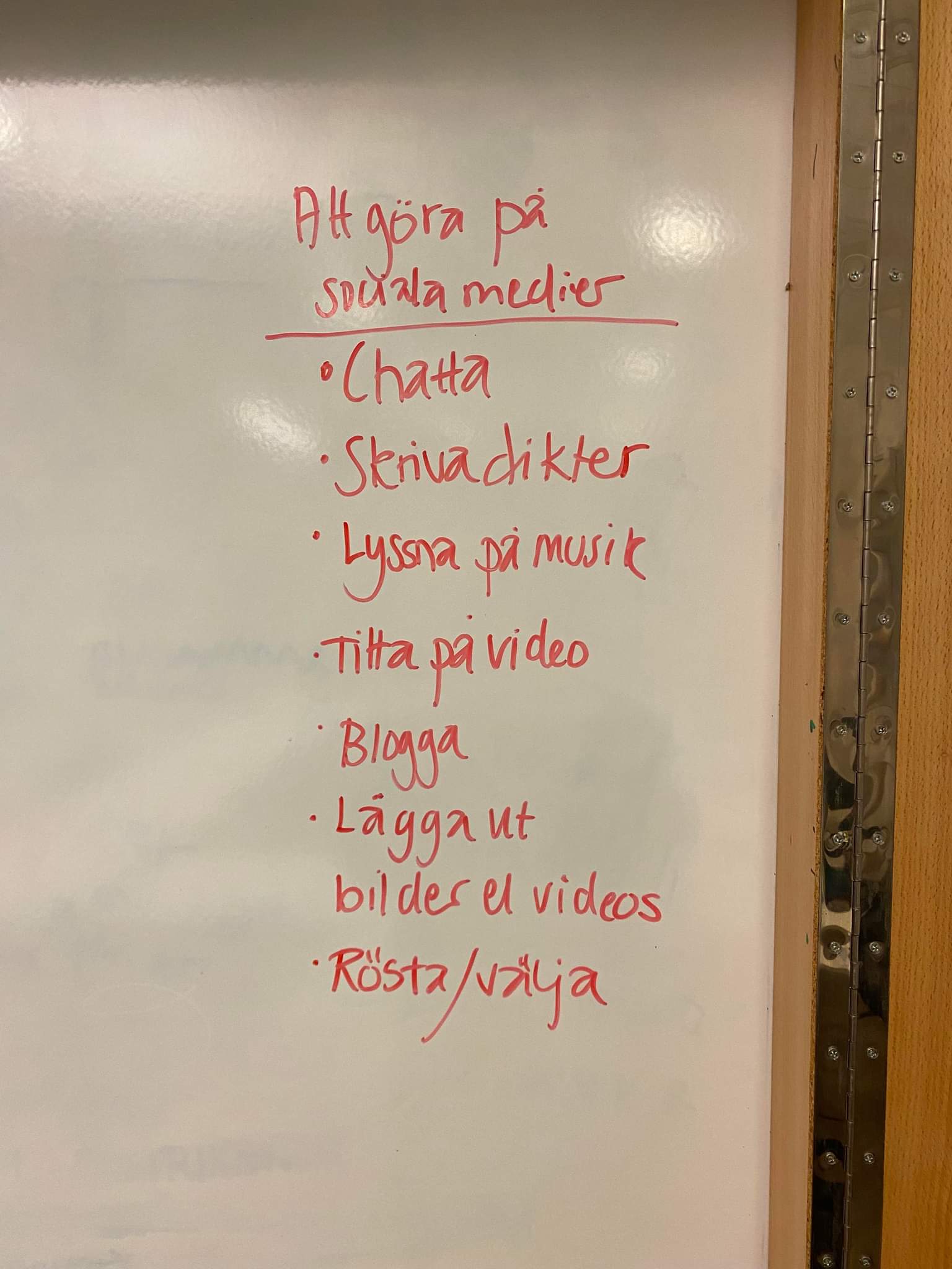 Maria från Studieförbundet Vuxenskolan/MittVal kom och berättade om bland annat valet i höst och grunderna i demokrati och hur röstningen i Sverige går till.